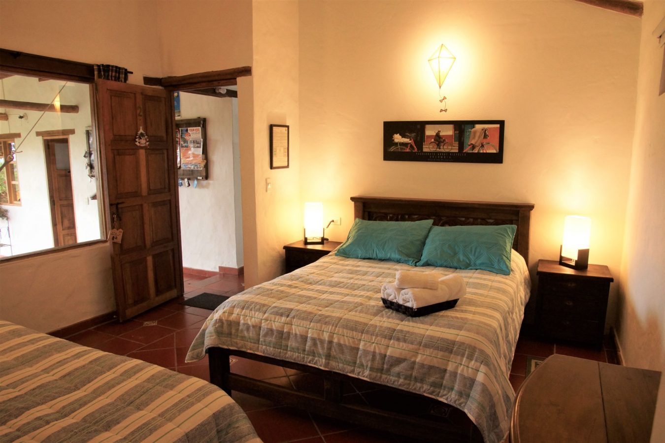 This family owned “finca” of 12 rooms, two cabins, camping and social areas with hammocks, peaceful gardens and hiking trails right at your door steps offers complete tranquility. Located 1.2km (15 to 20 minutes walk, free drink on arrival) from the main square in a country side and on the edge of the Iguaque National Park, this is a great place to enjoy a variety of outdoor activities. In our guesthouse our facilities include a bonfire area, an open plan kitchen (with pizza oven), TV room, bio-pool, kiosk with hammocks, breakfast and dinner are on offer too! We can help you organize many activities to enjoy your time here such as: rappelling, canyoning, horseback riding, hiking, city tours and birdwatching.